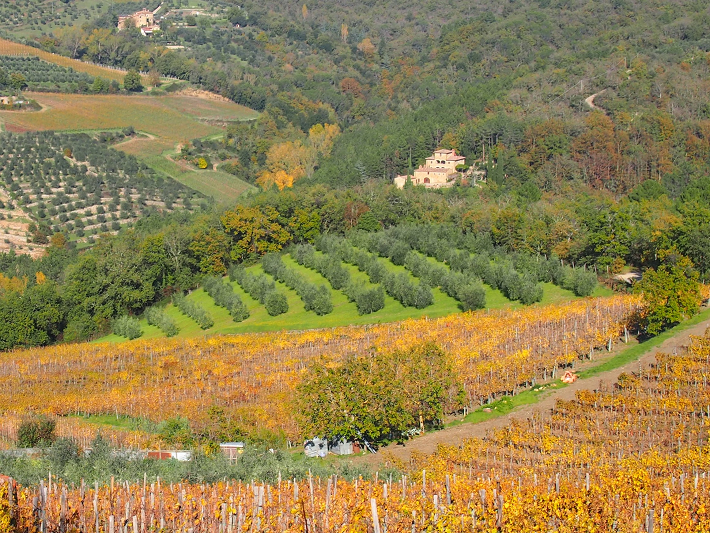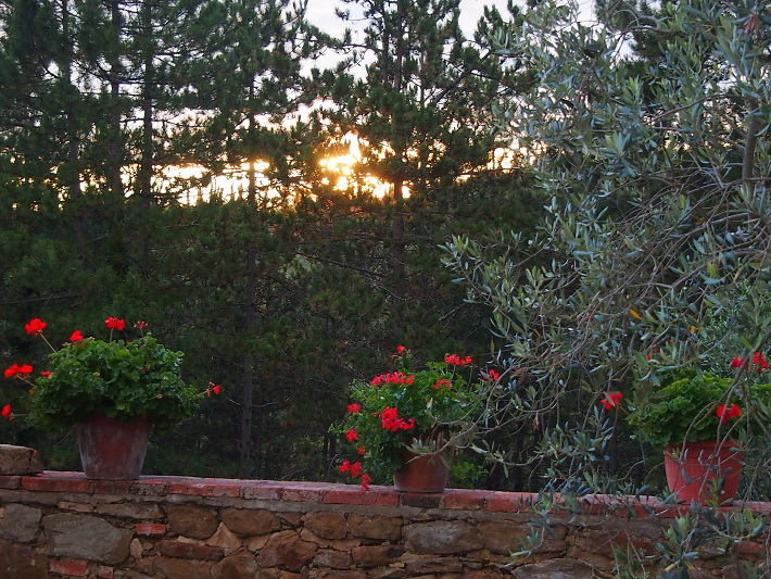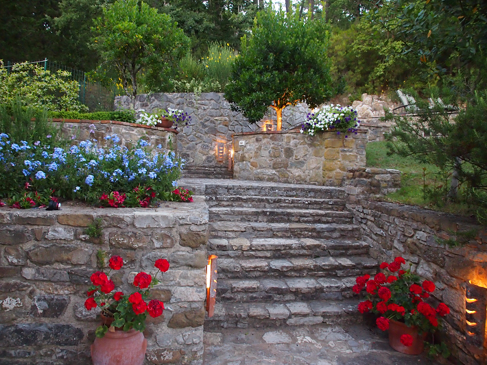 The gardens close to the house are filled with flowers and fruit through much of the year. There is a small herb garden outside the kitchen door and fig, pear, apple, persimmon, plum, corbezzollo and olive trees abound. Potted lemon trees grace the stone courtyard between the Main House and the Porcilaia. Lavender, boxwood and a rose arbor fill the formal garden and locally handcrafted terracotta pots overflow with flowers all season long.